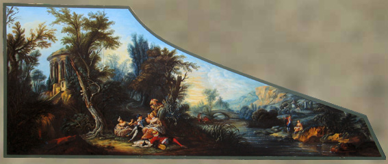 Coperchio dipinto ad olio copia da uno strumento originale Francese del 1730, conservato al "Museum fur Kunst und Gewerbe" di Amburgo.