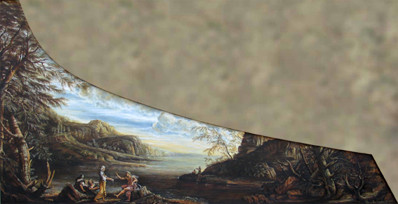 Le couvercle et la rabat peintes à l'huile, librement tiré par aux paysages de Salvator Rosa.