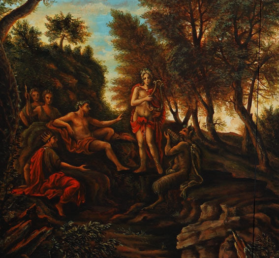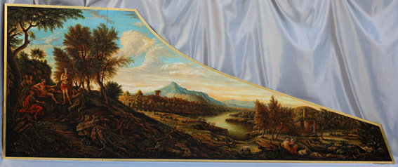 Dans le couvercle peint à l'huile, une réélaboration d'un instrument original, 1624 Ruckers conservé au "Museum Unterlinden", Colmar.