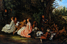 une oeuvre de Watteau (1684-1721) et vous insérez dans un paysage avec