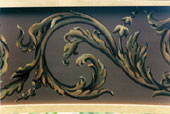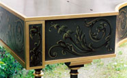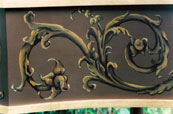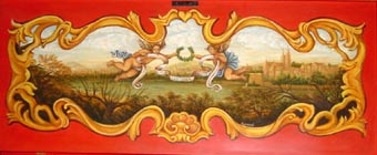 Particolari della decorazione della cassa esterna, dipinti ad olio.